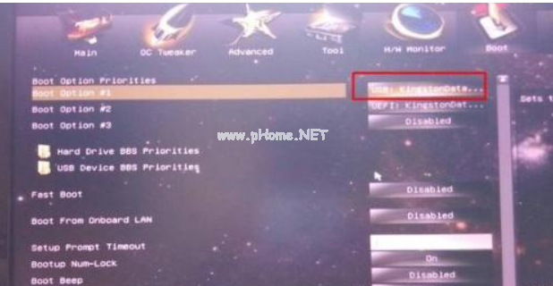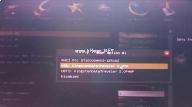 2、選擇【Boot Option #1】按回車鍵,選擇含有USB的U盤回車進入。
