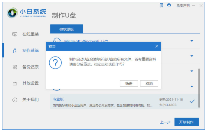3.制作U盤啟動(dòng)盤之前,需要備份好U盤里數(shù)據(jù),點(diǎn)擊確定按鈕。