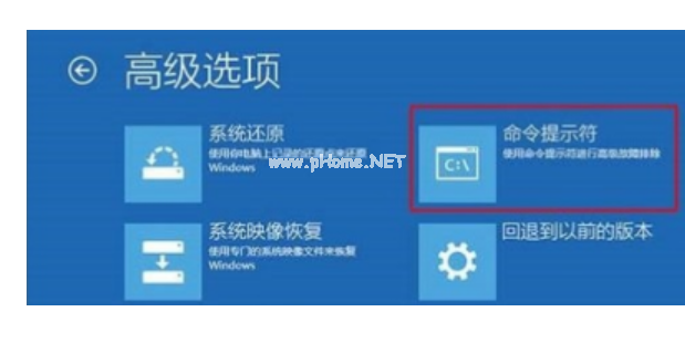3、依次打開(kāi)【疑難解答】,【高級(jí)選項(xiàng)】,【命令提示符】。