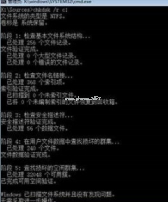 輸入命令修復(fù)操作: