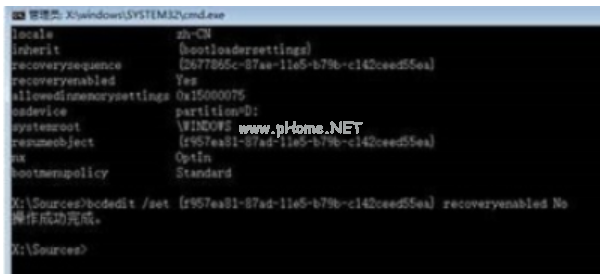 5.再次輸入【bcdedit /set {resumeobject字符串} recoveryenabled