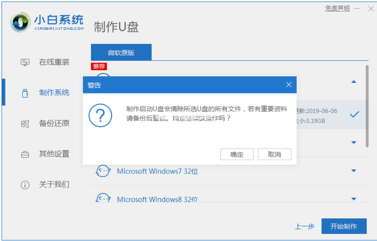 3、這步會需要格式化u盤,確定備份好u盤重要資料后,選擇確定格式化u盤。
