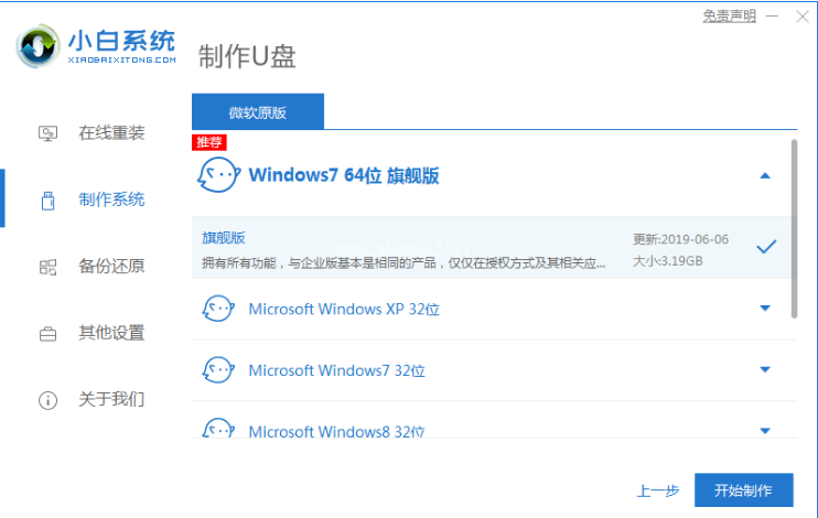 2、然后在制作系統(tǒng)中選擇需要安裝的操作系統(tǒng),點擊開始制作選項。