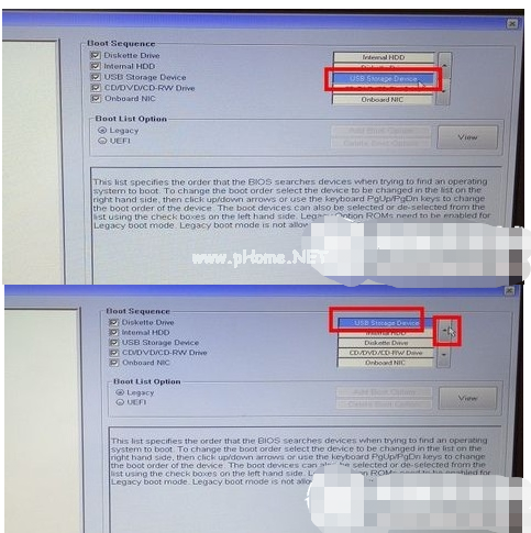 4、這個(gè)時(shí)候就可以將u盤設(shè)置為第一啟動(dòng)項(xiàng),點(diǎn)擊右側(cè)的箭頭,將USB啟動(dòng)項(xiàng)調(diào)整到需要的位置即可。