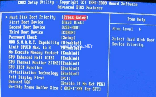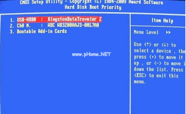 2、在以下界面內(nèi),選擇Hard Disk Boot Priority進入到BIOS開機啟動項優(yōu)先級選擇,然后按上下鍵盤選擇USB-HDD啟動項回車進入。如下圖:
