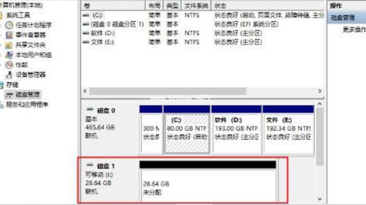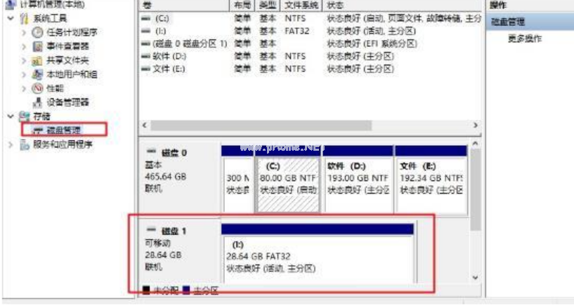 4、 進(jìn)入管理頁(yè)面之后,點(diǎn)擊“磁盤管理”,確認(rèn)u盤的盤號(hào)。