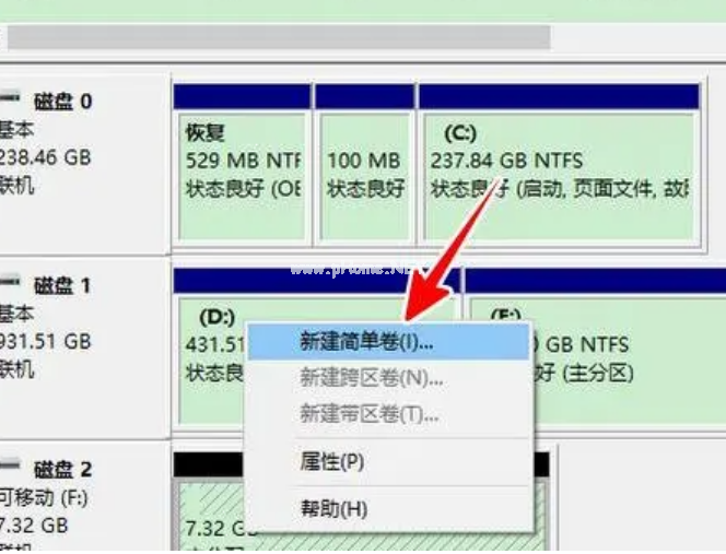 刪除卷后,“新建簡(jiǎn)單卷”。這樣u盤就能恢復(fù)成普通U盤一樣使用。