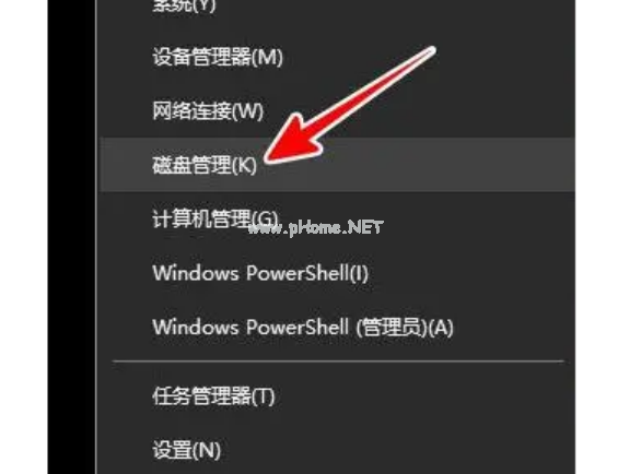 1、首先將U盤插入電腦,然后鼠標(biāo)右鍵點(diǎn)擊桌面左下方的開(kāi)始菜單,點(diǎn)擊“磁盤管理”進(jìn)入。