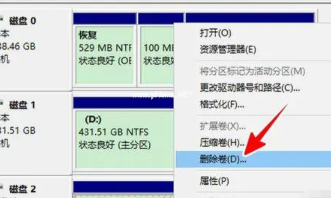 2、接著找到U盤并右擊鼠標(biāo),點(diǎn)擊“刪除卷”。