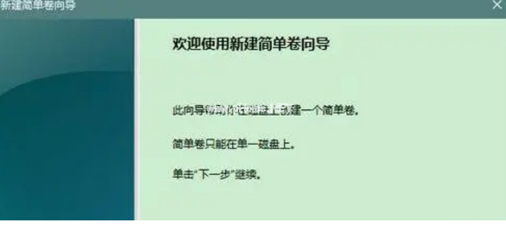 4、進(jìn)入新建簡(jiǎn)單卷向?qū)Ы缑妫c(diǎn)擊“下一步”。