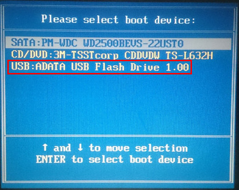 2、進(jìn)入快捷啟動項(xiàng)的選擇界面后,我們選擇u盤所在的位置,按回車鍵進(jìn)入,如下圖所示: