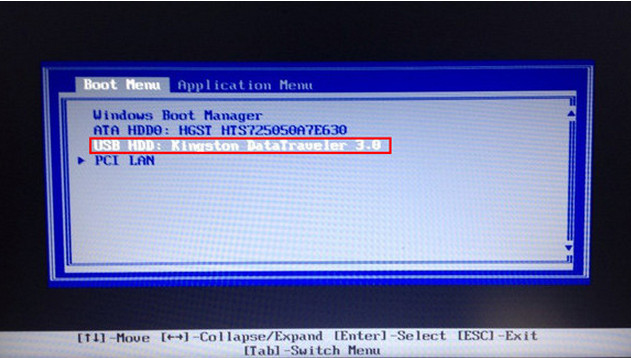 2、接著進入到啟動項選擇窗口,移動光標選擇u盤啟動,按下回車鍵執(zhí)行,如下圖所示: