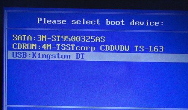 2、在啟動(dòng)項(xiàng)選擇窗口中,選擇USB驅(qū)動(dòng)所在的位置,按回車鍵進(jìn)入,如圖所示:
