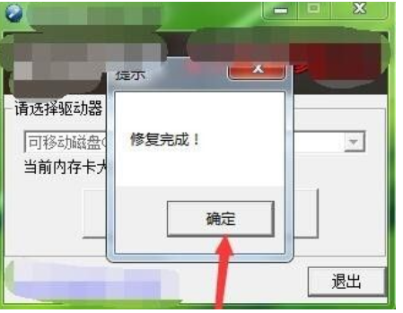 6、修復(fù)完成后彈出窗口提示,點擊確定。