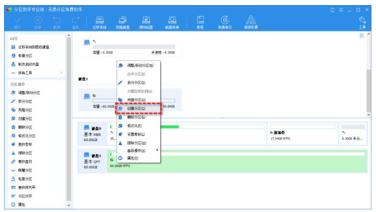 傲梅分區(qū)助手是一款免費(fèi)磁盤分區(qū)工具,它沒(méi)有上述工具的那些限制,它提供了一個(gè)友好的用戶界面,即使您是計(jì)算機(jī)新手也都能輕松上手。例如,您想創(chuàng)建新分區(qū),只需右鍵單擊具有可用空間的分區(qū)或未分配的空間,然后從下拉菜單中單擊“創(chuàng)建分區(qū)”,再根據(jù)提示操作即可。