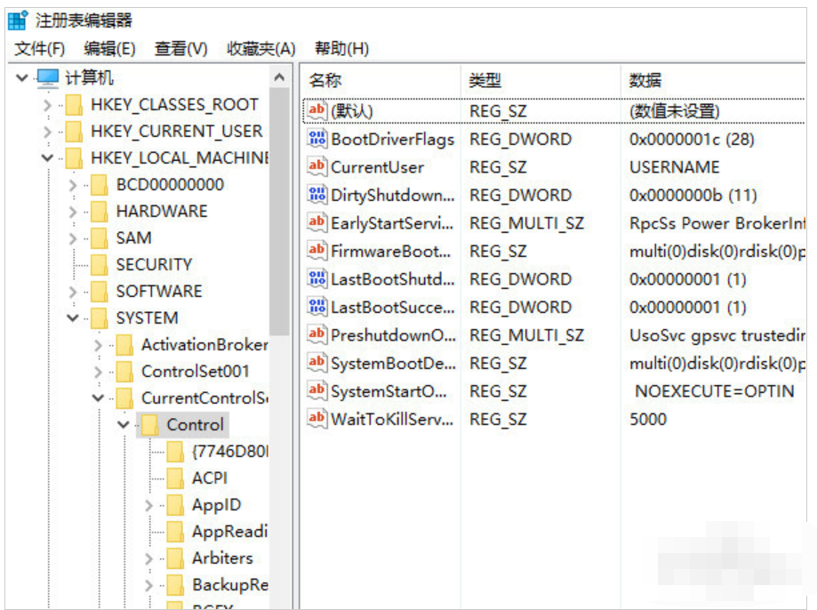 2、然后依次打開HKEY_LOCAL_MACHINE \ SYSTEM \ CurrentControlSet \ Control,選中之后看看右側(cè)是否有“StorageDevicePolicies”,如果沒有就需要新建。