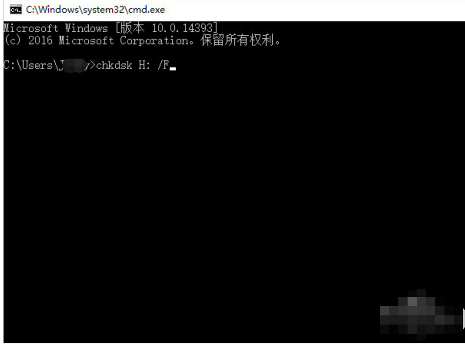 2、然后輸入“chkdsk H: /F”,其中“H:”是U盤盤符,輸入后點(diǎn)擊鍵盤回車鍵(用于檢查文件系統(tǒng)情況),提示沒問題的話直接重新拔插U盤即可。
