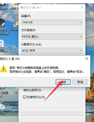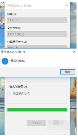 5、然后選擇確定,然后會進入格式化。