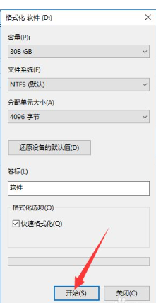 4、會彈出窗口,這時我們選擇格式化,點擊“開始”。