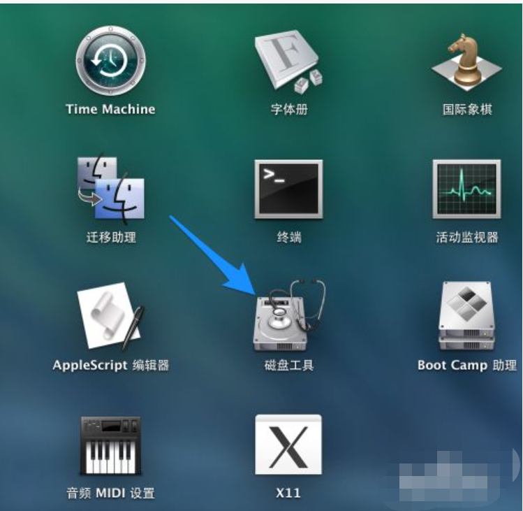 1、點(diǎn)擊電腦上的“磁盤工具”,打開。