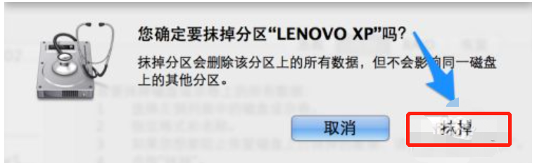 5、接根據(jù)系統(tǒng)的提示,確認(rèn)要格式化請點(diǎn)擊“抹掉”按鈕,如圖所示