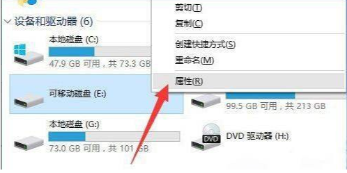 1.打開桌面的【計算機】找到u盤并右鍵u盤,點擊【屬性】。