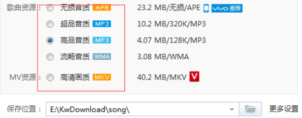 3、點(diǎn)擊下載按鈕以后,我們就會(huì)看到又很多的音質(zhì)的,我們只能下載我們可以下載的這個(gè)品質(zhì)的。