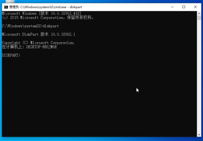 3、輸入并回車執(zhí)行 diskpart 磁盤分區(qū)命令。