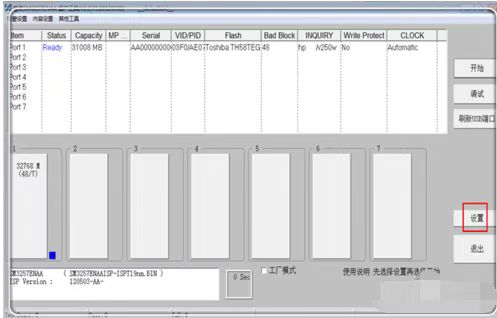 4、點(diǎn)擊“設(shè)置”按鈕,進(jìn)入到量產(chǎn)欄目中進(jìn)行量產(chǎn)前的設(shè)置工作。