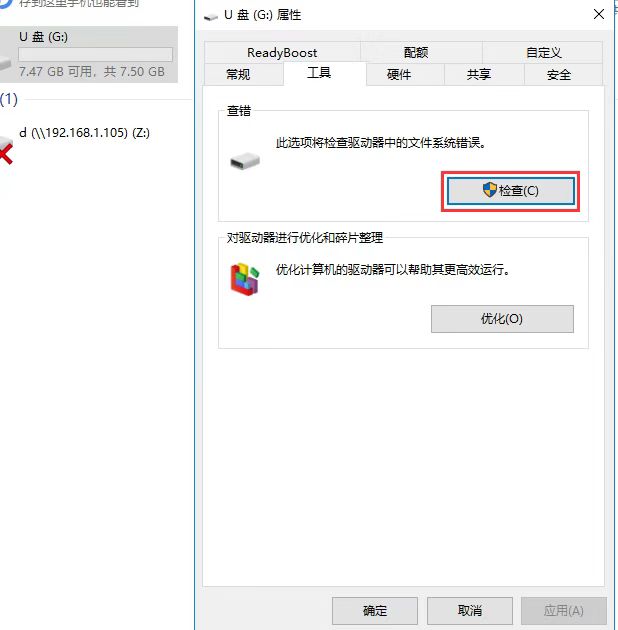 2、在打開(kāi)的屬性窗口上部點(diǎn)擊工具選項(xiàng)卡,然后在工具選項(xiàng)卡中點(diǎn)擊檢查。