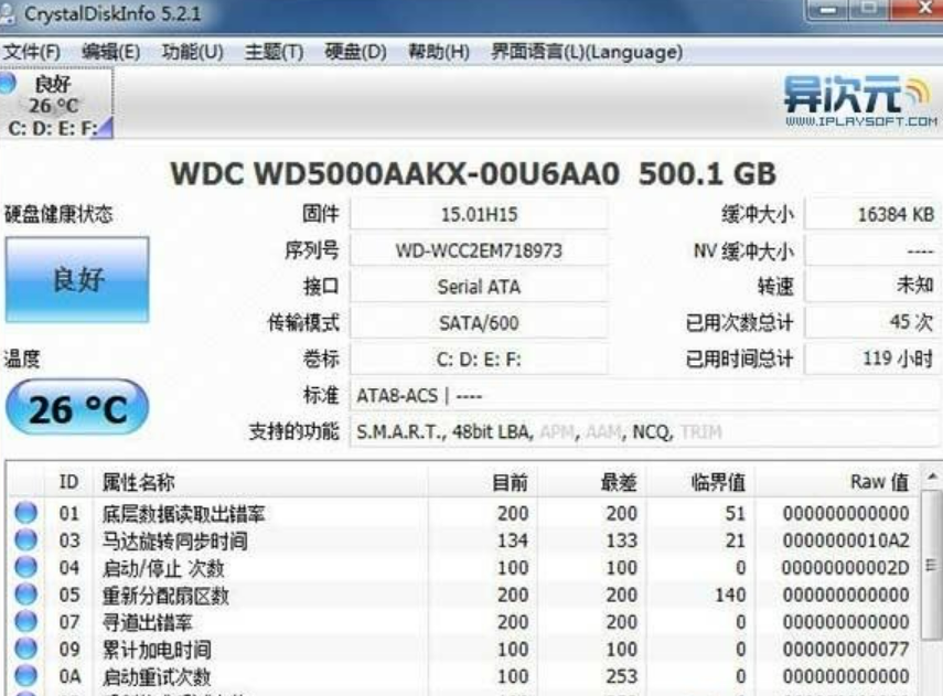 CrystalDiskInfo 簡稱 CDI,它主要的功能不是用于測試性能,而是一款實(shí)用的硬盤健康診斷工具,啟動它之后你就可以直觀地檢查硬盤的全部健康狀態(tài)、溫度以及更多一些相關(guān)的資料。它除了支持一般的機(jī)械硬盤之外,也支持 SSD 固態(tài)硬盤甚至部分移動硬盤。