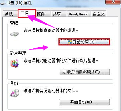 1、進(jìn)入U(xiǎn)盤屬性,檢查修復(fù)磁盤;