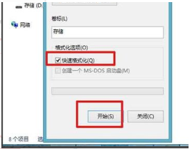7. 在彈出另外的對話框中勾選“快速格式化”,點(diǎn)擊“開始”就能格式化該U盤。