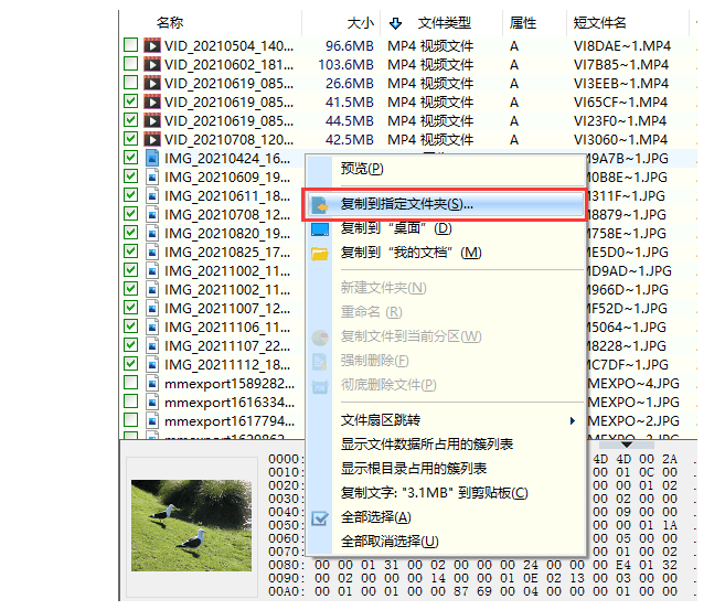 5、在掃描結(jié)果中挑選需要恢復的數(shù)據(jù),然后右擊選中的文件并選擇"復制到指定文件夾"選項,然后就可以根據(jù)軟件提示在電腦硬盤或是其他設備上設置文件夾來保存恢復的數(shù)據(jù)。