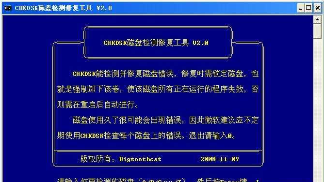 圖1.雙擊解壓得到的文件“CHKDSK磁盤修復(fù)工具V2.0.exe”,出現(xiàn)圖2: