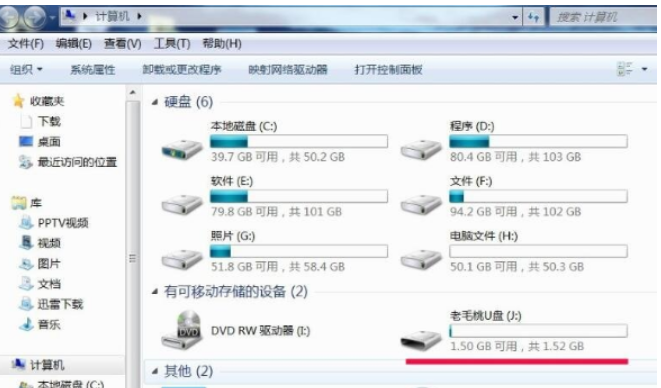 5、然后就會發(fā)現(xiàn)這個分區(qū)已經(jīng)有J盤盤符了,我們再去我的電腦里看看U盤是不是已經(jīng)顯示了。