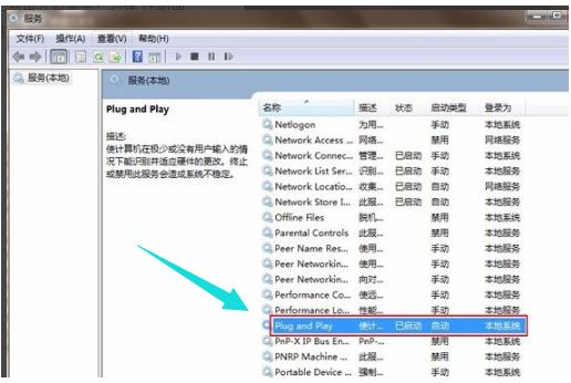 4.彈出的服務(wù)窗口中,找到Plug And Play(即插即用服務(wù))。