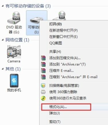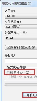3以上都無法打開U盤時,建議對U盤進行格式化操作。右擊“可移動磁盤”,在彈出的右鍵菜單中選擇“格式化”項。在打開的“格式化”窗口中,取消勾選“快速格式化”并點擊“開始”按鈕。