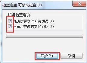 2、打開的窗口中切換至“工具”選項卡,點擊“查錯 開始檢查”按鈕,在彈出的窗口中同時勾選兩項,點擊“開始”按鈕來檢查并修復(fù)磁盤錯誤。