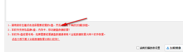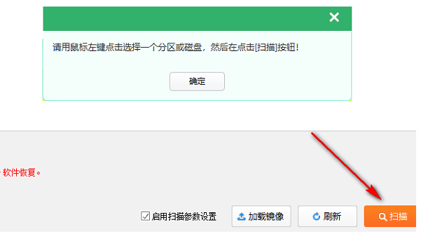 7、用鼠標(biāo)左鍵點(diǎn)擊選擇一個(gè)分區(qū)或磁盤。點(diǎn)擊掃描按鈕