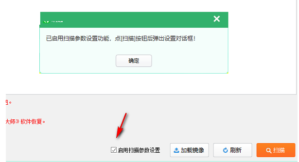 4、已啟用掃描參數(shù)設(shè)置功能,點(diǎn)掃描按鈕后彈出設(shè)置對話框!