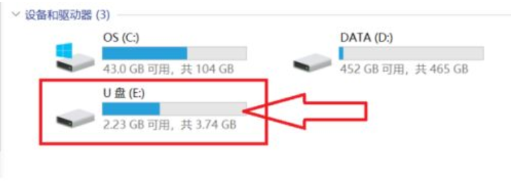 2.插入U(xiǎn)盤。查看盤符。
