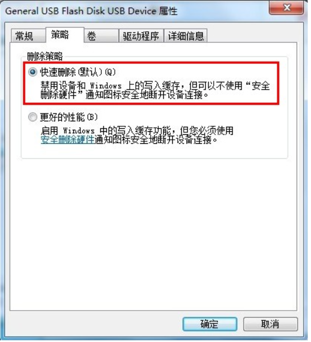 4、將策略改為“更好的性能”(xp系統(tǒng)則是“為提高性能而優(yōu)化”)。這樣就可以解決u盤被寫保護的問題啦。