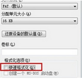 5、在彈出的格式化磁盤窗口中取消勾選“快速格式化”,再點擊“開始”按鈕,如下圖所示: