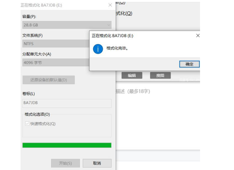 卷標(L)下可定義自己想要的名稱即可,如圖我們設定為BA7JDB名稱。最后在格式化選項下的快速格式化(Q)前打上勾。最后點擊確定,等待些時候就格式化好了。