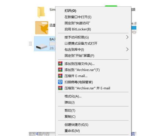 1、插入U盤,打開此電腦,右鍵選擇BA7JDB(E:)盤。