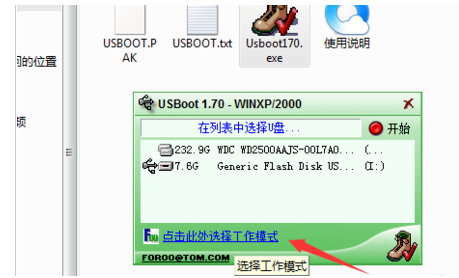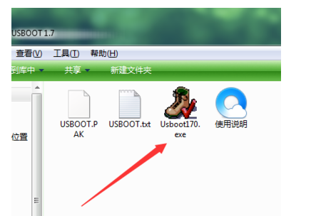 1、下載usboot我們解壓到桌面并且打開。插入U盤。