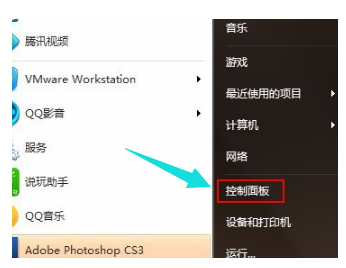 1、首先點擊桌面左下角的開始菜單,然后選擇“控制面板”。