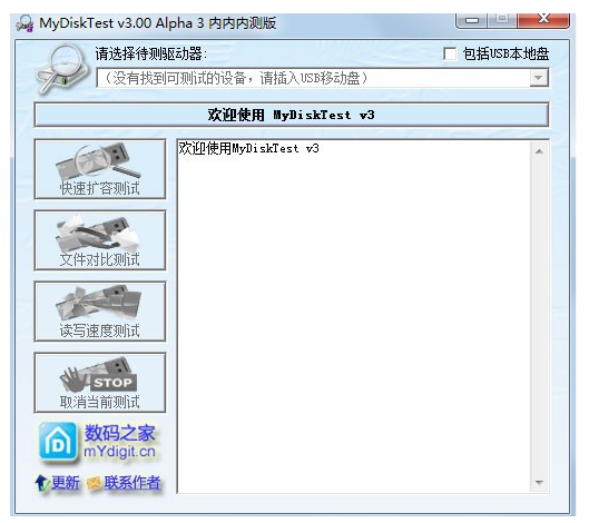 MyDiskTest是一款U盤/SD卡/CF卡等移動存儲產(chǎn)品擴容識別工具,MyDiskTest可以方便的檢測出存儲產(chǎn)品是否經(jīng)過擴充容量,以次充好。還可以檢測FLASH閃存是否有壞塊,是否采用黑片,不破壞磁盤原有數(shù)據(jù),并可以測試U盤的讀取和寫入速度。這是一款你挑選U盤和存儲卡必備的工具。