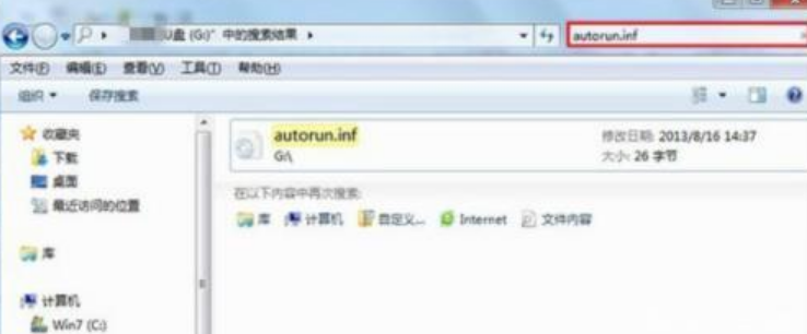 4,然后將中毒U盤插入計(jì)算機(jī)USB接口,并使用CMD Administrator DOS命令打開USB閃存驅(qū)動(dòng)器(您可以參考“如何使用命令安全,在DOS窗口下打開中毒U盤” ),然后打開u在右上角的“autorun.inf”中,刪除搜索autorun.inf文件。
